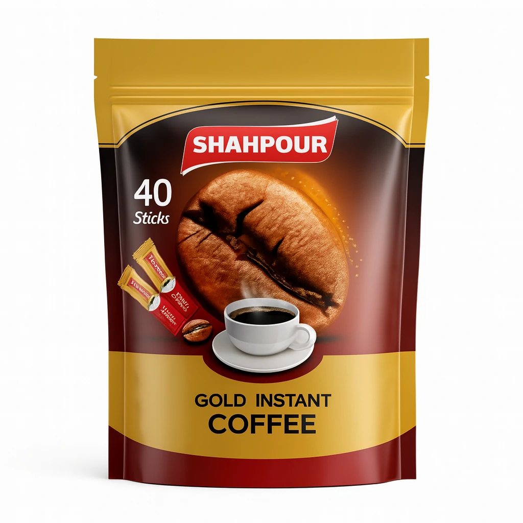 خانه نوشیدنی گرم قهوه گلد فوری شاهپور بسته۴۰ عددی ساشه ۲ گرمی